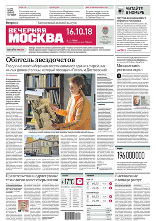 «Вечерняя Москва» — ежедневная российская вечерняя газета, старейшее из вечерних изданий в России, учрежденное в 1923 году. Выходит пять дней в неделю, кроме субботы и воскресенья. Отличается тем, что рассказывает о событиях еще не завершившегося дня. Оперативно освещает хронику и особенности жизни Москвы, охватывает все слои общества и большинство профессиональных и возрастных групп читателей.Издание представлено тремя выпусками – утренним ежедневным, вечерним (выходит три раза в неделю), еженедельным (выходит по четвергам).