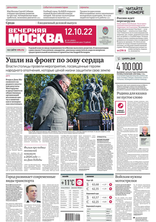 «Вечерняя Москва» — ежедневная российская вечерняя газета, старейшее из вечерних изданий в России, учрежденное в 1923 году. Выходит пять дней в неделю, кроме субботы и воскресенья. Отличается тем, что рассказывает о событиях еще не завершившегося дня. Оперативно освещает хронику и особенности жизни Москвы, охватывает все слои общества и большинство профессиональных и возрастных групп читателей.Издание представлено тремя выпусками – утренним ежедневным, вечерним (выходит три раза в неделю), еженедельным (выходит по четвергам).