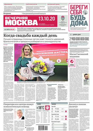 «Вечерняя Москва» — ежедневная российская вечерняя газета, старейшее из вечерних изданий в России, учрежденное в 1923 году. Выходит пять дней в неделю, кроме субботы и воскресенья. Отличается тем, что рассказывает о событиях еще не завершившегося дня. Оперативно освещает хронику и особенности жизни Москвы, охватывает все слои общества и большинство профессиональных и возрастных групп читателей.Издание представлено тремя выпусками – утренним ежедневным, вечерним (выходит три раза в неделю), еженедельным (выходит по четвергам).