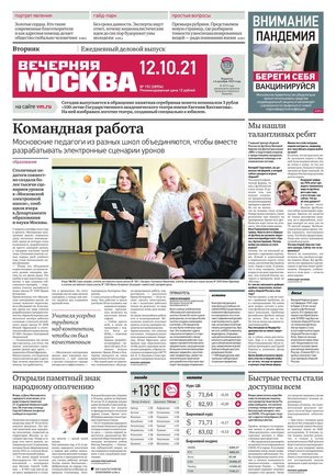 «Вечерняя Москва» — ежедневная российская вечерняя газета, старейшее из вечерних изданий в России, учрежденное в 1923 году. Выходит пять дней в неделю, кроме субботы и воскресенья. Отличается тем, что рассказывает о событиях еще не завершившегося дня. Оперативно освещает хронику и особенности жизни Москвы, охватывает все слои общества и большинство профессиональных и возрастных групп читателей.Издание представлено тремя выпусками – утренним ежедневным, вечерним (выходит три раза в неделю), еженедельным (выходит по четвергам).