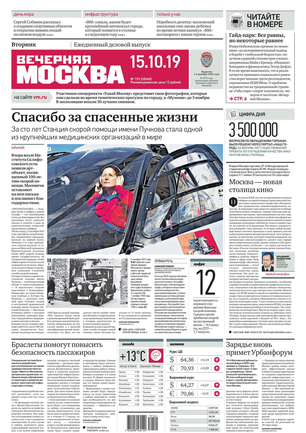 «Вечерняя Москва» — ежедневная российская вечерняя газета, старейшее из вечерних изданий в России, учрежденное в 1923 году. Выходит пять дней в неделю, кроме субботы и воскресенья. Отличается тем, что рассказывает о событиях еще не завершившегося дня. Оперативно освещает хронику и особенности жизни Москвы, охватывает все слои общества и большинство профессиональных и возрастных групп читателей.Издание представлено тремя выпусками – утренним ежедневным, вечерним (выходит три раза в неделю), еженедельным (выходит по четвергам).