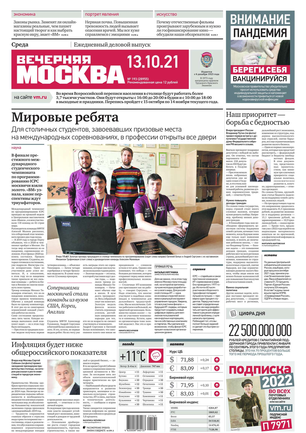«Вечерняя Москва» — ежедневная российская вечерняя газета, старейшее из вечерних изданий в России, учрежденное в 1923 году. Выходит пять дней в неделю, кроме субботы и воскресенья. Отличается тем, что рассказывает о событиях еще не завершившегося дня. Оперативно освещает хронику и особенности жизни Москвы, охватывает все слои общества и большинство профессиональных и возрастных групп читателей.Издание представлено тремя выпусками – утренним ежедневным, вечерним (выходит три раза в неделю), еженедельным (выходит по четвергам).