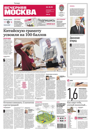 «Вечерняя Москва» — ежедневная российская вечерняя газета, старейшее из вечерних изданий в России, учрежденное в 1923 году. Выходит пять дней в неделю, кроме субботы и воскресенья. Отличается тем, что рассказывает о событиях еще не завершившегося дня. Оперативно освещает хронику и особенности жизни Москвы, охватывает все слои общества и большинство профессиональных и возрастных групп читателей.Издание представлено тремя выпусками – утренним ежедневным, вечерним (выходит три раза в неделю), еженедельным (выходит по четвергам).