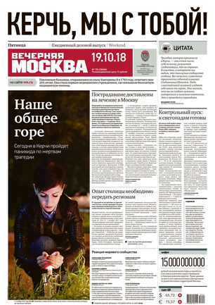 «Вечерняя Москва» — ежедневная российская вечерняя газета, старейшее из вечерних изданий в России, учрежденное в 1923 году. Выходит пять дней в неделю, кроме субботы и воскресенья. Отличается тем, что рассказывает о событиях еще не завершившегося дня. Оперативно освещает хронику и особенности жизни Москвы, охватывает все слои общества и большинство профессиональных и возрастных групп читателей.Издание представлено тремя выпусками – утренним ежедневным, вечерним (выходит три раза в неделю), еженедельным (выходит по четвергам).