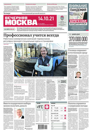 «Вечерняя Москва» — ежедневная российская вечерняя газета, старейшее из вечерних изданий в России, учрежденное в 1923 году. Выходит пять дней в неделю, кроме субботы и воскресенья. Отличается тем, что рассказывает о событиях еще не завершившегося дня. Оперативно освещает хронику и особенности жизни Москвы, охватывает все слои общества и большинство профессиональных и возрастных групп читателей.Издание представлено тремя выпусками – утренним ежедневным, вечерним (выходит три раза в неделю), еженедельным (выходит по четвергам).