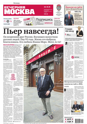 «Вечерняя Москва» — ежедневная российская вечерняя газета, старейшее из вечерних изданий в России, учрежденное в 1923 году. Выходит пять дней в неделю, кроме субботы и воскресенья. Отличается тем, что рассказывает о событиях еще не завершившегося дня. Оперативно освещает хронику и особенности жизни Москвы, охватывает все слои общества и большинство профессиональных и возрастных групп читателей.Издание представлено тремя выпусками – утренним ежедневным, вечерним (выходит три раза в неделю), еженедельным (выходит по четвергам).