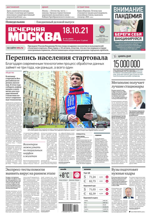 «Вечерняя Москва» — ежедневная российская вечерняя газета, старейшее из вечерних изданий в России, учрежденное в 1923 году. Выходит пять дней в неделю, кроме субботы и воскресенья. Отличается тем, что рассказывает о событиях еще не завершившегося дня. Оперативно освещает хронику и особенности жизни Москвы, охватывает все слои общества и большинство профессиональных и возрастных групп читателей.Издание представлено тремя выпусками – утренним ежедневным, вечерним (выходит три раза в неделю), еженедельным (выходит по четвергам).