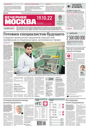 «Вечерняя Москва» — ежедневная российская вечерняя газета, старейшее из вечерних изданий в России, учрежденное в 1923 году. Выходит пять дней в неделю, кроме субботы и воскресенья. Отличается тем, что рассказывает о событиях еще не завершившегося дня. Оперативно освещает хронику и особенности жизни Москвы, охватывает все слои общества и большинство профессиональных и возрастных групп читателей.Издание представлено тремя выпусками – утренним ежедневным, вечерним (выходит три раза в неделю), еженедельным (выходит по четвергам).
