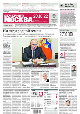 «Вечерняя Москва» — ежедневная российская вечерняя газета, старейшее из вечерних изданий в России, учрежденное в 1923 году. Выходит пять дней в неделю, кроме субботы и воскресенья. Отличается тем, что рассказывает о событиях еще не завершившегося дня. Оперативно освещает хронику и особенности жизни Москвы, охватывает все слои общества и большинство профессиональных и возрастных групп читателей.Издание представлено тремя выпусками – утренним ежедневным, вечерним (выходит три раза в неделю), еженедельным (выходит по четвергам).
