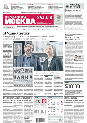«Вечерняя Москва» — ежедневная российская вечерняя газета, старейшее из вечерних изданий в России, учрежденное в 1923 году. Выходит пять дней в неделю, кроме субботы и воскресенья. Отличается тем, что рассказывает о событиях еще не завершившегося дня. Оперативно освещает хронику и особенности жизни Москвы, охватывает все слои общества и большинство профессиональных и возрастных групп читателей.Издание представлено тремя выпусками – утренним ежедневным, вечерним (выходит три раза в неделю), еженедельным (выходит по четвергам).