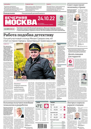 «Вечерняя Москва» — ежедневная российская вечерняя газета, старейшее из вечерних изданий в России, учрежденное в 1923 году. Выходит пять дней в неделю, кроме субботы и воскресенья. Отличается тем, что рассказывает о событиях еще не завершившегося дня. Оперативно освещает хронику и особенности жизни Москвы, охватывает все слои общества и большинство профессиональных и возрастных групп читателей.Издание представлено тремя выпусками – утренним ежедневным, вечерним (выходит три раза в неделю), еженедельным (выходит по четвергам).