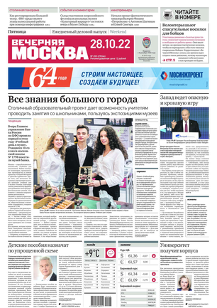 «Вечерняя Москва» — ежедневная российская вечерняя газета, старейшее из вечерних изданий в России, учрежденное в 1923 году. Выходит пять дней в неделю, кроме субботы и воскресенья. Отличается тем, что рассказывает о событиях еще не завершившегося дня. Оперативно освещает хронику и особенности жизни Москвы, охватывает все слои общества и большинство профессиональных и возрастных групп читателей.Издание представлено тремя выпусками – утренним ежедневным, вечерним (выходит три раза в неделю), еженедельным (выходит по четвергам).