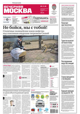 «Вечерняя Москва» — ежедневная российская вечерняя газета, старейшее из вечерних изданий в России, учрежденное в 1923 году. Выходит пять дней в неделю, кроме субботы и воскресенья. Отличается тем, что рассказывает о событиях еще не завершившегося дня. Оперативно освещает хронику и особенности жизни Москвы, охватывает все слои общества и большинство профессиональных и возрастных групп читателей.Издание представлено тремя выпусками – утренним ежедневным, вечерним (выходит три раза в неделю), еженедельным (выходит по четвергам).