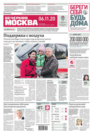 «Вечерняя Москва» — ежедневная российская вечерняя газета, старейшее из вечерних изданий в России, учрежденное в 1923 году. Выходит пять дней в неделю, кроме субботы и воскресенья. Отличается тем, что рассказывает о событиях еще не завершившегося дня. Оперативно освещает хронику и особенности жизни Москвы, охватывает все слои общества и большинство профессиональных и возрастных групп читателей.Издание представлено тремя выпусками – утренним ежедневным, вечерним (выходит три раза в неделю), еженедельным (выходит по четвергам).