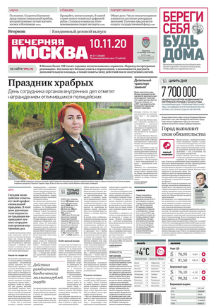 «Вечерняя Москва» — ежедневная российская вечерняя газета, старейшее из вечерних изданий в России, учрежденное в 1923 году. Выходит пять дней в неделю, кроме субботы и воскресенья. Отличается тем, что рассказывает о событиях еще не завершившегося дня. Оперативно освещает хронику и особенности жизни Москвы, охватывает все слои общества и большинство профессиональных и возрастных групп читателей.Издание представлено тремя выпусками – утренним ежедневным, вечерним (выходит три раза в неделю), еженедельным (выходит по четвергам).