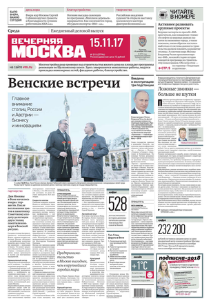 «Вечерняя Москва» — ежедневная российская вечерняя газета, старейшее из вечерних изданий в России, учрежденное в 1923 году. Выходит пять дней в неделю, кроме субботы и воскресенья. Отличается тем, что рассказывает о событиях еще не завершившегося дня. Оперативно освещает хронику и особенности жизни Москвы, охватывает все слои общества и большинство профессиональных и возрастных групп читателей.Издание представлено тремя выпусками – утренним ежедневным, вечерним (выходит три раза в неделю), еженедельным (выходит по четвергам).