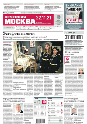 «Вечерняя Москва» — ежедневная российская вечерняя газета, старейшее из вечерних изданий в России, учрежденное в 1923 году. Выходит пять дней в неделю, кроме субботы и воскресенья. Отличается тем, что рассказывает о событиях еще не завершившегося дня. Оперативно освещает хронику и особенности жизни Москвы, охватывает все слои общества и большинство профессиональных и возрастных групп читателей.Издание представлено тремя выпусками – утренним ежедневным, вечерним (выходит три раза в неделю), еженедельным (выходит по четвергам).