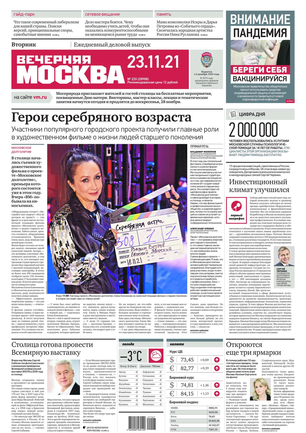 «Вечерняя Москва» — ежедневная российская вечерняя газета, старейшее из вечерних изданий в России, учрежденное в 1923 году. Выходит пять дней в неделю, кроме субботы и воскресенья. Отличается тем, что рассказывает о событиях еще не завершившегося дня. Оперативно освещает хронику и особенности жизни Москвы, охватывает все слои общества и большинство профессиональных и возрастных групп читателей.Издание представлено тремя выпусками – утренним ежедневным, вечерним (выходит три раза в неделю), еженедельным (выходит по четвергам).
