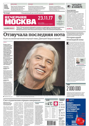 «Вечерняя Москва» — ежедневная российская вечерняя газета, старейшее из вечерних изданий в России, учрежденное в 1923 году. Выходит пять дней в неделю, кроме субботы и воскресенья. Отличается тем, что рассказывает о событиях еще не завершившегося дня. Оперативно освещает хронику и особенности жизни Москвы, охватывает все слои общества и большинство профессиональных и возрастных групп читателей.Издание представлено тремя выпусками – утренним ежедневным, вечерним (выходит три раза в неделю), еженедельным (выходит по четвергам).