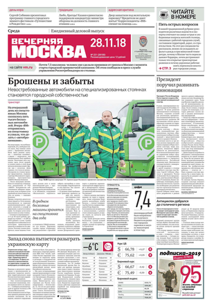 «Вечерняя Москва» — ежедневная российская вечерняя газета, старейшее из вечерних изданий в России, учрежденное в 1923 году. Выходит пять дней в неделю, кроме субботы и воскресенья. Отличается тем, что рассказывает о событиях еще не завершившегося дня. Оперативно освещает хронику и особенности жизни Москвы, охватывает все слои общества и большинство профессиональных и возрастных групп читателей.Издание представлено тремя выпусками – утренним ежедневным, вечерним (выходит три раза в неделю), еженедельным (выходит по четвергам).