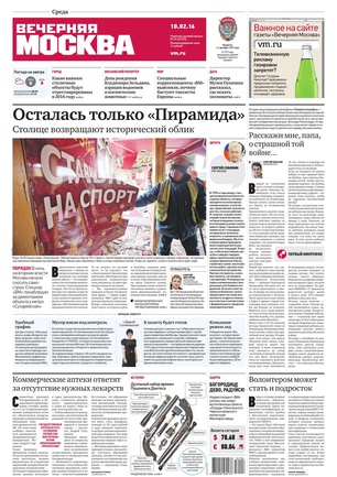 «Вечерняя Москва» — ежедневная российская вечерняя газета, старейшее из вечерних изданий в России, учрежденное в 1923 году. Выходит пять дней в неделю, кроме субботы и воскресенья. Отличается тем, что рассказывает о событиях еще не завершившегося дня. Оперативно освещает хронику и особенности жизни Москвы, охватывает все слои общества и большинство профессиональных и возрастных групп читателей.Издание представлено тремя выпусками – утренним ежедневным, вечерним (выходит три раза в неделю), еженедельным (выходит по четвергам).