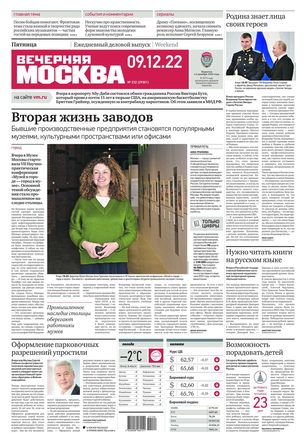 «Вечерняя Москва» — ежедневная российская вечерняя газета, старейшее из вечерних изданий в России, учрежденное в 1923 году. Выходит пять дней в неделю, кроме субботы и воскресенья. Отличается тем, что рассказывает о событиях еще не завершившегося дня. Оперативно освещает хронику и особенности жизни Москвы, охватывает все слои общества и большинство профессиональных и возрастных групп читателей.Издание представлено тремя выпусками – утренним ежедневным, вечерним (выходит три раза в неделю), еженедельным (выходит по четвергам).
