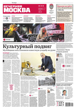 «Вечерняя Москва» — ежедневная российская вечерняя газета, старейшее из вечерних изданий в России, учрежденное в 1923 году. Выходит пять дней в неделю, кроме субботы и воскресенья. Отличается тем, что рассказывает о событиях еще не завершившегося дня. Оперативно освещает хронику и особенности жизни Москвы, охватывает все слои общества и большинство профессиональных и возрастных групп читателей.Издание представлено тремя выпусками – утренним ежедневным, вечерним (выходит три раза в неделю), еженедельным (выходит по четвергам).