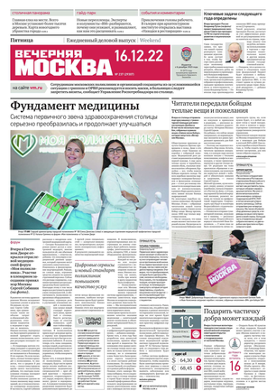Вечером на страницах «Вечерки» появляются эксклюзивные интервью ньюсмейкеров культуры и шоу-бизнеса, репортажи журналистов по вечерней Москве, афиша нашего города. Один раз в неделю выходит специальный студенческий вечерний номер.
