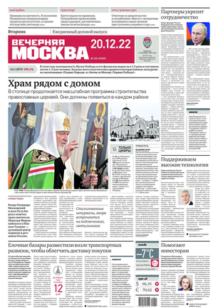 «Вечерняя Москва» — ежедневная российская вечерняя газета, старейшее из вечерних изданий в России, учрежденное в 1923 году. Выходит пять дней в неделю, кроме субботы и воскресенья. Отличается тем, что рассказывает о событиях еще не завершившегося дня. Оперативно освещает хронику и особенности жизни Москвы, охватывает все слои общества и большинство профессиональных и возрастных групп читателей.Издание представлено тремя выпусками – утренним ежедневным, вечерним (выходит три раза в неделю), еженедельным (выходит по четвергам).