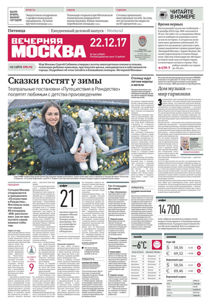 «Вечерняя Москва» — ежедневная российская вечерняя газета, старейшее из вечерних изданий в России, учрежденное в 1923 году. Выходит пять дней в неделю, кроме субботы и воскресенья. Отличается тем, что рассказывает о событиях еще не завершившегося дня. Оперативно освещает хронику и особенности жизни Москвы, охватывает все слои общества и большинство профессиональных и возрастных групп читателей.Издание представлено тремя выпусками – утренним ежедневным, вечерним (выходит три раза в неделю), еженедельным (выходит по четвергам).