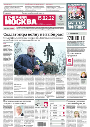 «Вечерняя Москва» — ежедневная российская вечерняя газета, старейшее из вечерних изданий в России, учрежденное в 1923 году. Выходит пять дней в неделю, кроме субботы и воскресенья. Отличается тем, что рассказывает о событиях еще не завершившегося дня. Оперативно освещает хронику и особенности жизни Москвы, охватывает все слои общества и большинство профессиональных и возрастных групп читателей.Издание представлено тремя выпусками – утренним ежедневным, вечерним (выходит три раза в неделю), еженедельным (выходит по четвергам).