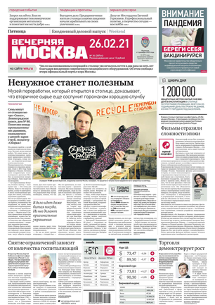 «Вечерняя Москва» — ежедневная российская вечерняя газета, старейшее из вечерних изданий в России, учрежденное в 1923 году. Выходит пять дней в неделю, кроме субботы и воскресенья. Отличается тем, что рассказывает о событиях еще не завершившегося дня. Оперативно освещает хронику и особенности жизни Москвы, охватывает все слои общества и большинство профессиональных и возрастных групп читателей.Издание представлено тремя выпусками – утренним ежедневным, вечерним (выходит три раза в неделю), еженедельным (выходит по четвергам).