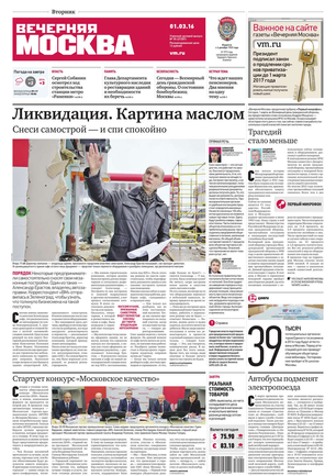 «Вечерняя Москва» — ежедневная российская вечерняя газета, старейшее из вечерних изданий в России, учрежденное в 1923 году. Выходит пять дней в неделю, кроме субботы и воскресенья. Отличается тем, что рассказывает о событиях еще не завершившегося дня. Оперативно освещает хронику и особенности жизни Москвы, охватывает все слои общества и большинство профессиональных и возрастных групп читателей.Издание представлено тремя выпусками – утренним ежедневным, вечерним (выходит три раза в неделю), еженедельным (выходит по четвергам).
