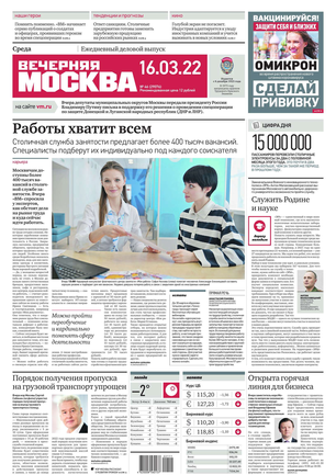 «Вечерняя Москва» — ежедневная российская вечерняя газета, старейшее из вечерних изданий в России, учрежденное в 1923 году. Выходит пять дней в неделю, кроме субботы и воскресенья. Отличается тем, что рассказывает о событиях еще не завершившегося дня. Оперативно освещает хронику и особенности жизни Москвы, охватывает все слои общества и большинство профессиональных и возрастных групп читателей.Издание представлено тремя выпусками – утренним ежедневным, вечерним (выходит три раза в неделю), еженедельным (выходит по четвергам).