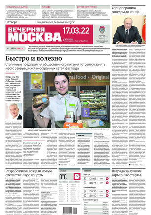 «Вечерняя Москва» — ежедневная российская вечерняя газета, старейшее из вечерних изданий в России, учрежденное в 1923 году. Выходит пять дней в неделю, кроме субботы и воскресенья. Отличается тем, что рассказывает о событиях еще не завершившегося дня. Оперативно освещает хронику и особенности жизни Москвы, охватывает все слои общества и большинство профессиональных и возрастных групп читателей.Издание представлено тремя выпусками – утренним ежедневным, вечерним (выходит три раза в неделю), еженедельным (выходит по четвергам).