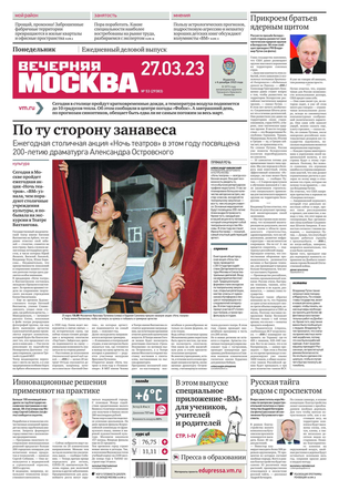 «Вечерняя Москва» — ежедневная российская вечерняя газета, старейшее из вечерних изданий в России, учрежденное в 1923 году. Выходит пять дней в неделю, кроме субботы и воскресенья. Отличается тем, что рассказывает о событиях еще не завершившегося дня. Оперативно освещает хронику и особенности жизни Москвы, охватывает все слои общества и большинство профессиональных и возрастных групп читателей.Издание представлено тремя выпусками – утренним ежедневным, вечерним (выходит три раза в неделю), еженедельным (выходит по четвергам).