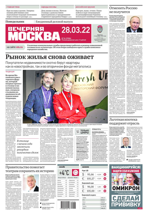 «Вечерняя Москва» — ежедневная российская вечерняя газета, старейшее из вечерних изданий в России, учрежденное в 1923 году. Выходит пять дней в неделю, кроме субботы и воскресенья. Отличается тем, что рассказывает о событиях еще не завершившегося дня. Оперативно освещает хронику и особенности жизни Москвы, охватывает все слои общества и большинство профессиональных и возрастных групп читателей.Издание представлено тремя выпусками – утренним ежедневным, вечерним (выходит три раза в неделю), еженедельным (выходит по четвергам).