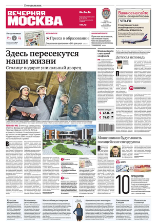 «Вечерняя Москва» — ежедневная российская вечерняя газета, старейшее из вечерних изданий в России, учрежденное в 1923 году. Выходит пять дней в неделю, кроме субботы и воскресенья. Отличается тем, что рассказывает о событиях еще не завершившегося дня. Оперативно освещает хронику и особенности жизни Москвы, охватывает все слои общества и большинство профессиональных и возрастных групп читателей.Издание представлено тремя выпусками – утренним ежедневным, вечерним (выходит три раза в неделю), еженедельным (выходит по четвергам).
