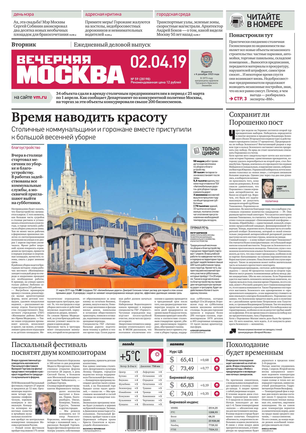 «Вечерняя Москва» — ежедневная российская вечерняя газета, старейшее из вечерних изданий в России, учрежденное в 1923 году. Выходит пять дней в неделю, кроме субботы и воскресенья. Отличается тем, что рассказывает о событиях еще не завершившегося дня. Оперативно освещает хронику и особенности жизни Москвы, охватывает все слои общества и большинство профессиональных и возрастных групп читателей.Издание представлено тремя выпусками – утренним ежедневным, вечерним (выходит три раза в неделю), еженедельным (выходит по четвергам).