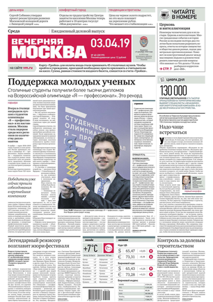 «Вечерняя Москва» — ежедневная российская вечерняя газета, старейшее из вечерних изданий в России, учрежденное в 1923 году. Выходит пять дней в неделю, кроме субботы и воскресенья. Отличается тем, что рассказывает о событиях еще не завершившегося дня. Оперативно освещает хронику и особенности жизни Москвы, охватывает все слои общества и большинство профессиональных и возрастных групп читателей.Издание представлено тремя выпусками – утренним ежедневным, вечерним (выходит три раза в неделю), еженедельным (выходит по четвергам).