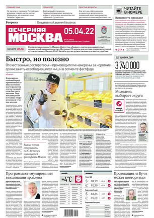 «Вечерняя Москва» — ежедневная российская вечерняя газета, старейшее из вечерних изданий в России, учрежденное в 1923 году. Выходит пять дней в неделю, кроме субботы и воскресенья. Отличается тем, что рассказывает о событиях еще не завершившегося дня. Оперативно освещает хронику и особенности жизни Москвы, охватывает все слои общества и большинство профессиональных и возрастных групп читателей.Издание представлено тремя выпусками – утренним ежедневным, вечерним (выходит три раза в неделю), еженедельным (выходит по четвергам).