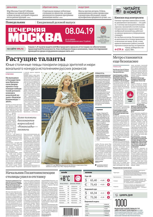 «Вечерняя Москва» — ежедневная российская вечерняя газета, старейшее из вечерних изданий в России, учрежденное в 1923 году. Выходит пять дней в неделю, кроме субботы и воскресенья. Отличается тем, что рассказывает о событиях еще не завершившегося дня. Оперативно освещает хронику и особенности жизни Москвы, охватывает все слои общества и большинство профессиональных и возрастных групп читателей.Издание представлено тремя выпусками – утренним ежедневным, вечерним (выходит три раза в неделю), еженедельным (выходит по четвергам).