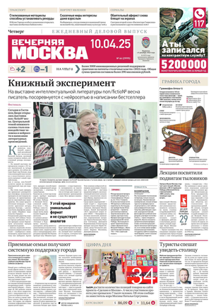 «Вечерняя Москва» — ежедневная российская вечерняя газета, старейшее из вечерних изданий в России, учрежденное в 1923 году. Выходит пять дней в неделю, кроме субботы и воскресенья. Отличается тем, что рассказывает о событиях еще не завершившегося дня. Оперативно освещает хронику и особенности жизни Москвы, охватывает все слои общества и большинство профессиональных и возрастных групп читателей.Издание представлено тремя выпусками – утренним ежедневным, вечерним (выходит три раза в неделю), еженедельным (выходит по четвергам).