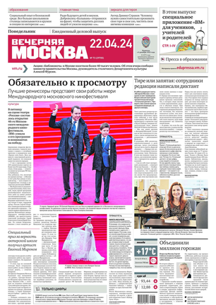 «Вечерняя Москва» — ежедневная российская вечерняя газета, старейшее из вечерних изданий в России, учрежденное в 1923 году. Выходит пять дней в неделю, кроме субботы и воскресенья. Отличается тем, что рассказывает о событиях еще не завершившегося дня. Оперативно освещает хронику и особенности жизни Москвы, охватывает все слои общества и большинство профессиональных и возрастных групп читателей.Издание представлено тремя выпусками – утренним ежедневным, вечерним (выходит три раза в неделю), еженедельным (выходит по четвергам).