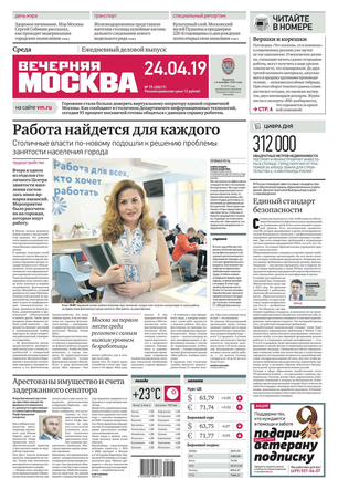 «Вечерняя Москва» — ежедневная российская вечерняя газета, старейшее из вечерних изданий в России, учрежденное в 1923 году. Выходит пять дней в неделю, кроме субботы и воскресенья. Отличается тем, что рассказывает о событиях еще не завершившегося дня. Оперативно освещает хронику и особенности жизни Москвы, охватывает все слои общества и большинство профессиональных и возрастных групп читателей.Издание представлено тремя выпусками – утренним ежедневным, вечерним (выходит три раза в неделю), еженедельным (выходит по четвергам).