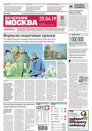 «Вечерняя Москва» — ежедневная российская вечерняя газета, старейшее из вечерних изданий в России, учрежденное в 1923 году. Выходит пять дней в неделю, кроме субботы и воскресенья. Отличается тем, что рассказывает о событиях еще не завершившегося дня. Оперативно освещает хронику и особенности жизни Москвы, охватывает все слои общества и большинство профессиональных и возрастных групп читателей.Издание представлено тремя выпусками – утренним ежедневным, вечерним (выходит три раза в неделю), еженедельным (выходит по четвергам).