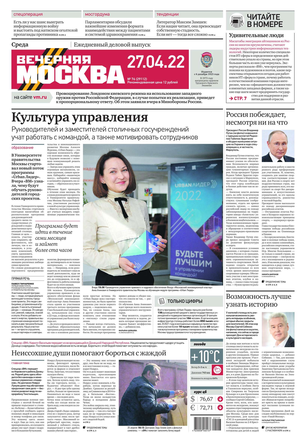 «Вечерняя Москва» — ежедневная российская вечерняя газета, старейшее из вечерних изданий в России, учрежденное в 1923 году. Выходит пять дней в неделю, кроме субботы и воскресенья. Отличается тем, что рассказывает о событиях еще не завершившегося дня. Оперативно освещает хронику и особенности жизни Москвы, охватывает все слои общества и большинство профессиональных и возрастных групп читателей.Издание представлено тремя выпусками – утренним ежедневным, вечерним (выходит три раза в неделю), еженедельным (выходит по четвергам).