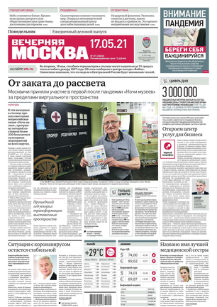 «Вечерняя Москва» — ежедневная российская вечерняя газета, старейшее из вечерних изданий в России, учрежденное в 1923 году. Выходит пять дней в неделю, кроме субботы и воскресенья. Отличается тем, что рассказывает о событиях еще не завершившегося дня. Оперативно освещает хронику и особенности жизни Москвы, охватывает все слои общества и большинство профессиональных и возрастных групп читателей.Издание представлено тремя выпусками – утренним ежедневным, вечерним (выходит три раза в неделю), еженедельным (выходит по четвергам).
