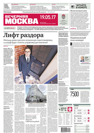 «Вечерняя Москва» — ежедневная российская вечерняя газета, старейшее из вечерних изданий в России, учрежденное в 1923 году. Выходит пять дней в неделю, кроме субботы и воскресенья. Отличается тем, что рассказывает о событиях еще не завершившегося дня. Оперативно освещает хронику и особенности жизни Москвы, охватывает все слои общества и большинство профессиональных и возрастных групп читателей.Издание представлено тремя выпусками – утренним ежедневным, вечерним (выходит три раза в неделю), еженедельным (выходит по четвергам).