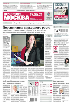 «Вечерняя Москва» — ежедневная российская вечерняя газета, старейшее из вечерних изданий в России, учрежденное в 1923 году. Выходит пять дней в неделю, кроме субботы и воскресенья. Отличается тем, что рассказывает о событиях еще не завершившегося дня. Оперативно освещает хронику и особенности жизни Москвы, охватывает все слои общества и большинство профессиональных и возрастных групп читателей.Издание представлено тремя выпусками – утренним ежедневным, вечерним (выходит три раза в неделю), еженедельным (выходит по четвергам).
